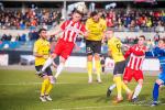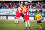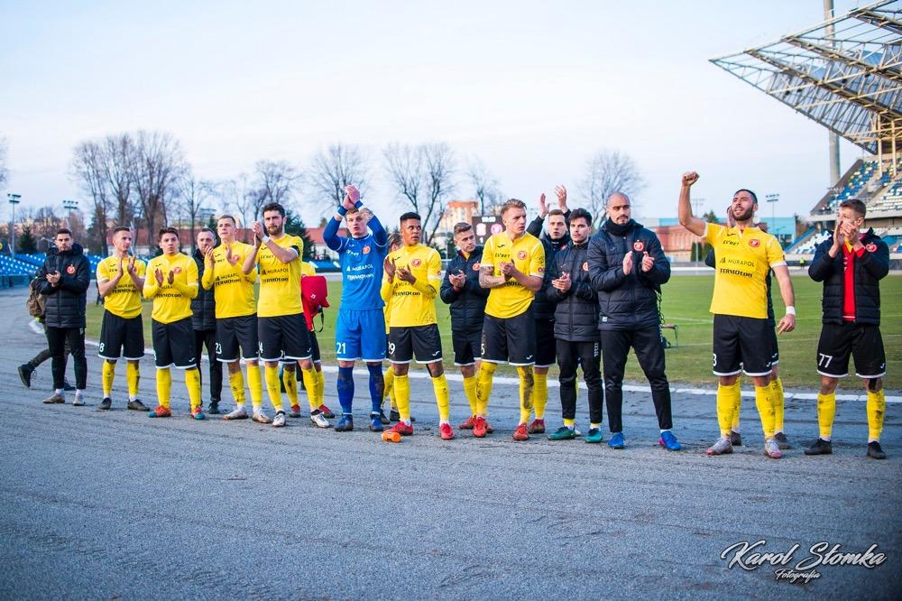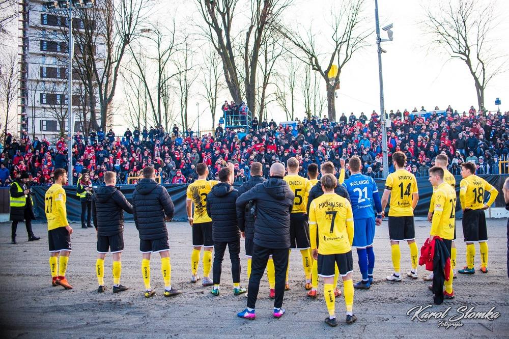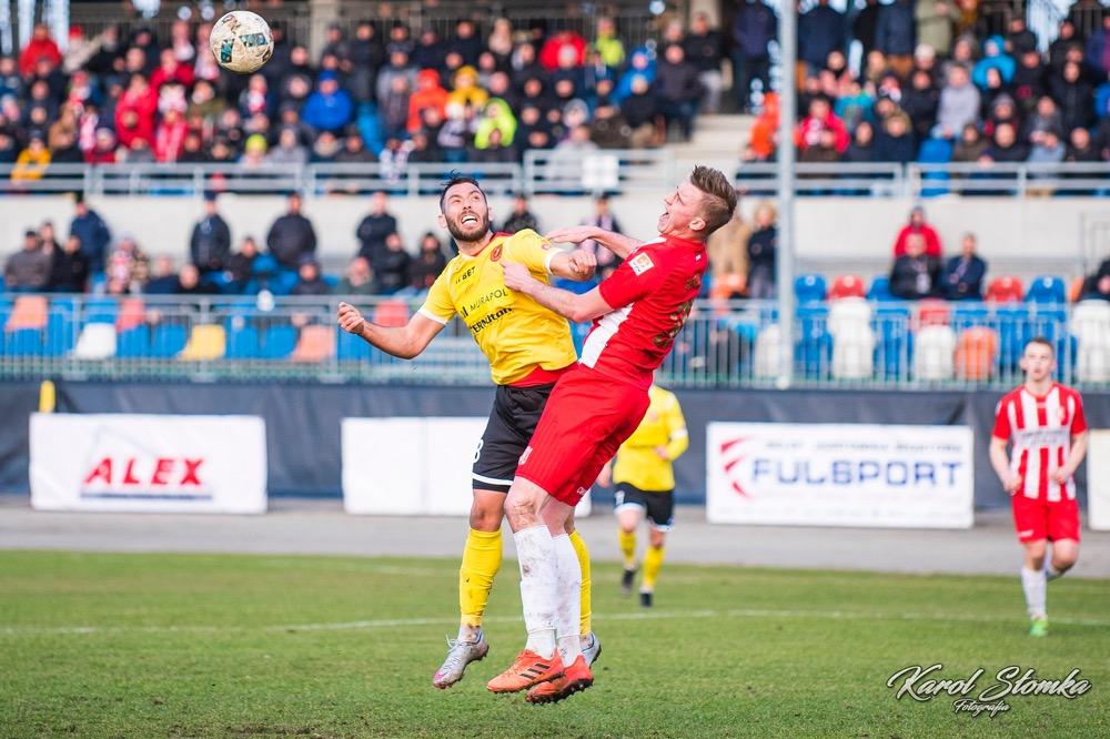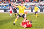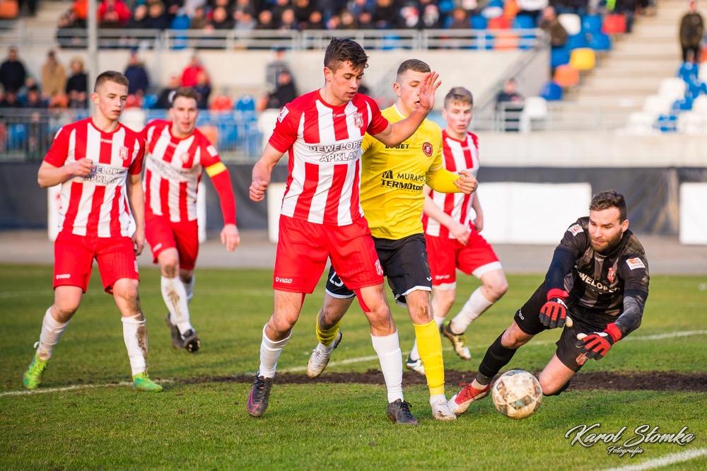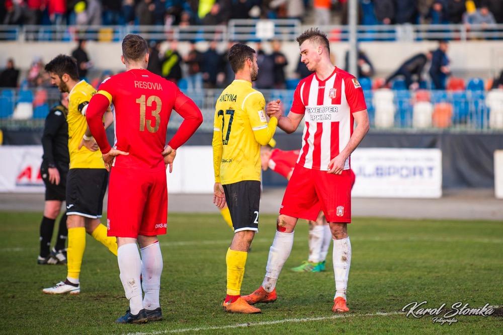 - 16 marca 2019, Stadion Miejski w Rzeszowie. Piłkarze Resovii (biało-czerwone koszulki) zremisowali 1-1 w meczu 2 ligi z faworyzowanym Widzewem Łódź. Gola dla "Pasiaków" jeszcze w pierwszej połowie strzelił Bartłomiej Makowski z rzutu karnego. Wyrównał po przerwie Rafał Wolsztyński (fot. Karol Słomka)