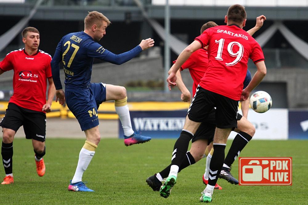 - 10.04.2019 - Piłkarze Stali Rzeszów wygrali na własnym boisku ze Spartakusem Daleszyce 5-2. (fot. Radosław Kuśmierz)