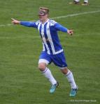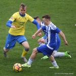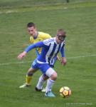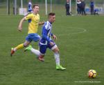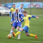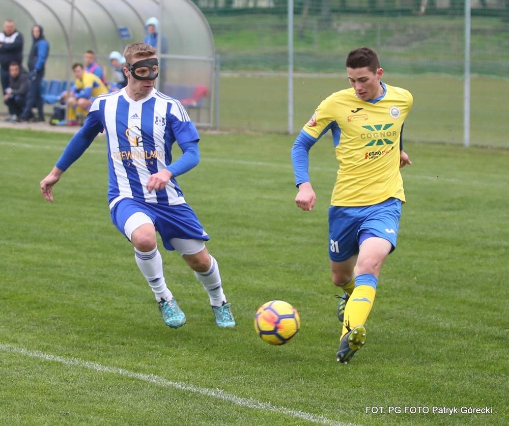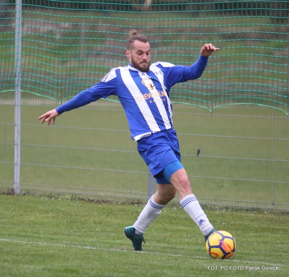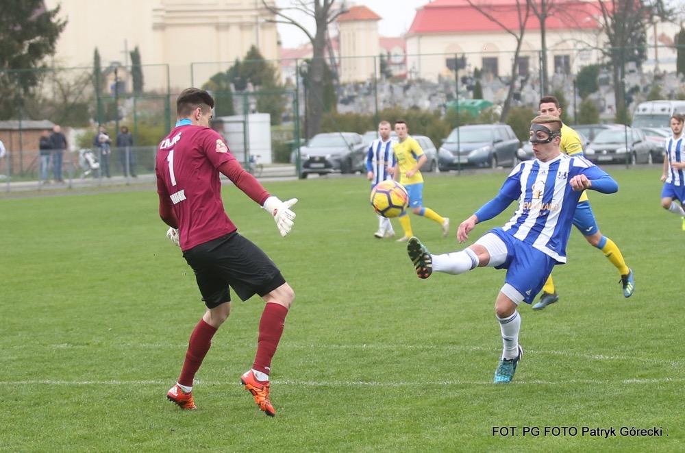 - 10.04.2019, środa. Gracze Sokoła Sieniawa (biało-niebieskie stroje) pokonali piłkarzy Hutnika Kraków 2-1 w meczu 23. kolejki rozgrywek 3 ligi grupy IV. Gole dla gospodarzy zdobyli Sebastian Brocki i Bartłomiej Purcha. Po stronie gości na liście strzelców zapisał się Błażej Radwanek (fot. Patryk Górecki)