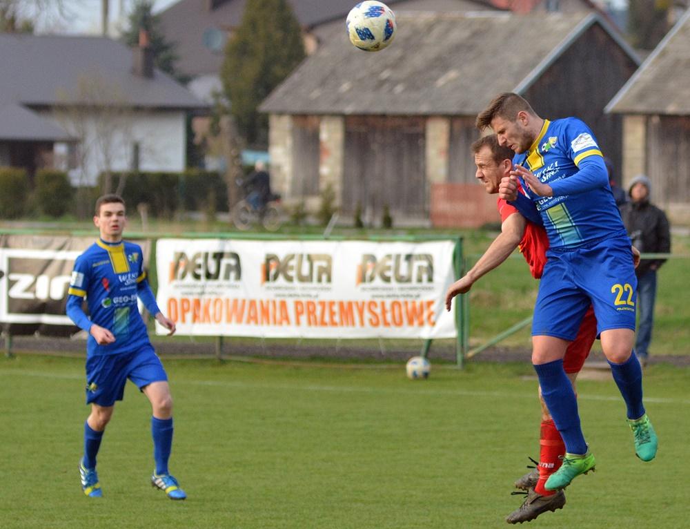 - 13.04.2019, sobota. Piłkarze Sokoła Kolbuszowa Dolna (w czerwonych strojach) ulegli przed własną publicznością graczom Ekoball Stali Sanok 0-3 w meczu 4 ligi podkarpackiej.