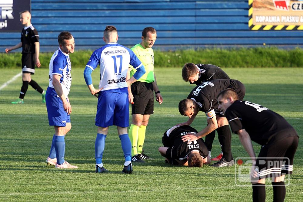 - 8.05.2019 - Piłkarze Stali Gorzyce przegrali na własnym boisku z Błękitnymi Ropczyce aż 0-6. (fot. Radosław Kuśmierz)