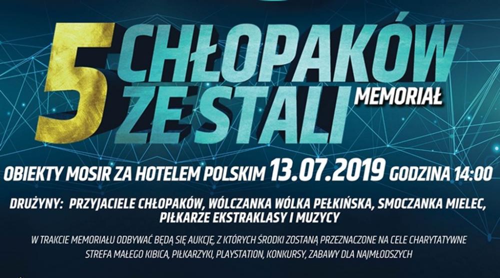 Na błoniach MOSiR Mielec odbędzie się charytatywny memoriał piłkarski 5 Chłopaków ze Stali. Jego organizatorem jest Krystian Pydych. Wydarzenie ma na celu upamiętnić piłkarzy, którzy zginęli w wypadku drogowym w Weryni wiosną 2016 roku, podróżując na mecz Wólczanki Wólka Pełkińska z Avią Świdnik.