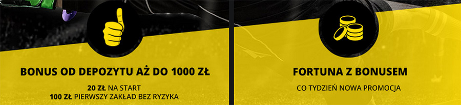 Fortuna - bonus od depozytu 1000 PLN, zakład bez ryzyka 100 PLN i freebet 20 PLN
