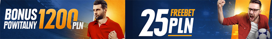 Freebet 25 PLN łączy się z inną promocją bonus powitalny 1200 PLN. Możesz więc skorzystać z obydwu bonusów.