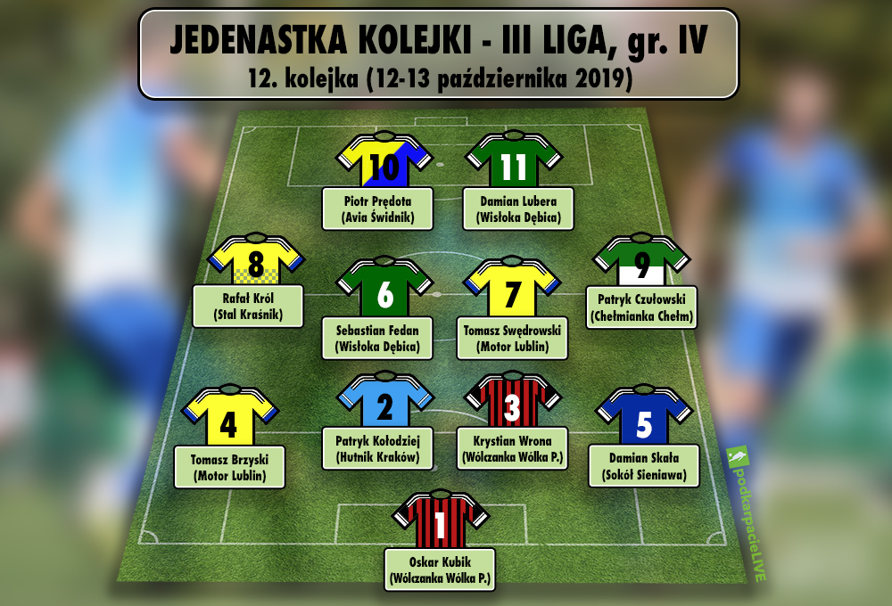 Zobaczcie jak wygląda jedenastka 12. kolejki rozgrywek 3 ligi grupy IV. Wybraliśmy 11. najlepszych według nas zawodników w meczach rozegranych w dniach 12-13 października 2019.