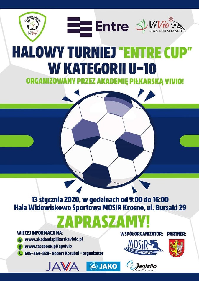 ENTRE CUP to pierwszy turniej, w ramach nowego projektu Akademii Piłkarskiej Vivio mającego na celu organizację zmagań dla młodych piłkarzy zarówno na hali jak i trawiastych nawierzchniach.