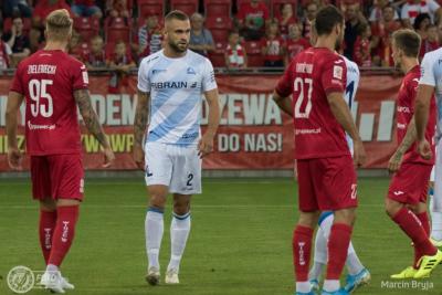 Zespół dowodzony przez Janusza Niedźwiedzia próbował odrobić straty, jednak wyni w tej potyczce nie był najważniejszy. Ostatecznie pierwsza odsłona zakończyła się prowadzeniem trzecioligowca. Druga połowa fatalnie rozpoczęła się dla czarno-czerwonych. Jeden z zawodników popełnił w polu karnym błąd i arbiter podyktował rzut karny.