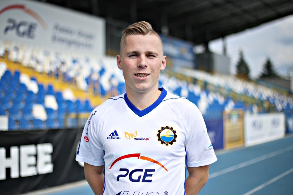 Grzegorz Tomasiewicz przekaże swoją koszulkę jednemu z kibiców, gdy uda się sprzedać 200 wirtualnych biletów na mecz Stali Mielec z Radomiakiem (fot. stalmielec.com)