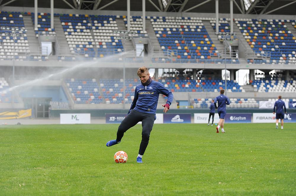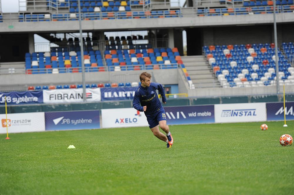 Piłkarze Stali Rzeszów mieli też okazję wreszcie potrenować z piłką. Na zdjęciu Robert Trznadel.