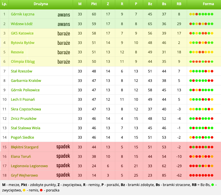 W najkorzystniejszej sytuacji jest Górnik, któremu do awansu potrzeba zaledwie punktu albo potknięcia jednego z rywali (remis GKS-u lub porażki Widzewa).