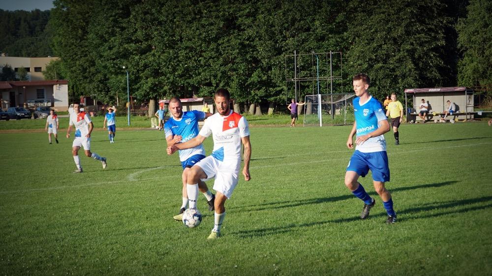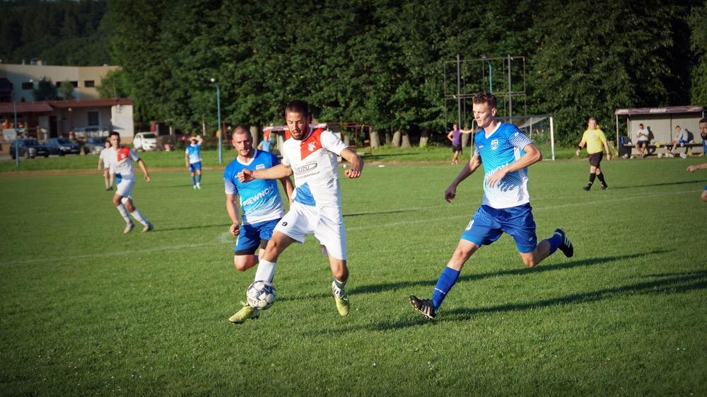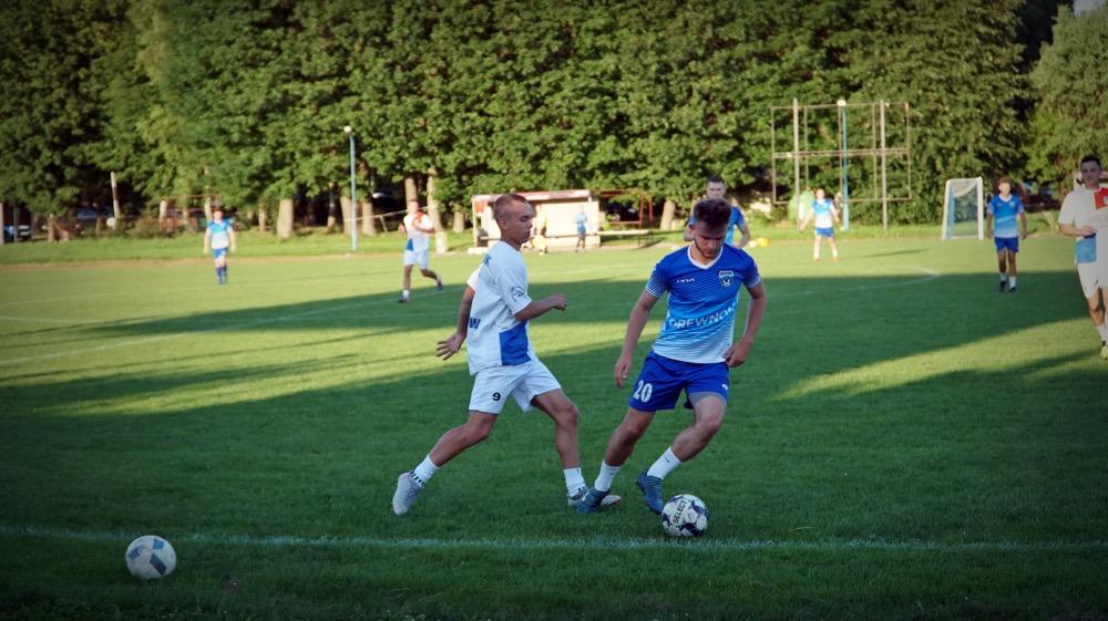 - Piłkarze Wisłoka Strzyżów (białe stroje) pokonali 1-0 graczy Wisłoka Wiśniowa w meczu sparingowym (fot. Tomasz Ciombor)