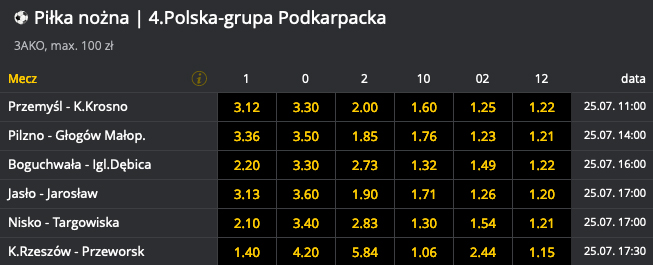 Jakieś pomysły na wyniki meczów 1. kolejki w IV lidze podkarpackiej? Bo jeśli tak - można zarobić parę złotych ;)