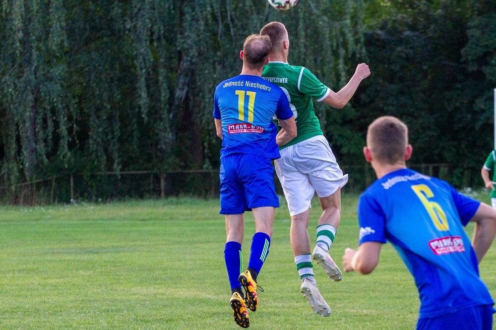 Jedność Niechobrz straciła zwycięstwo z Włokniarzem Rakszawa w doliczonym czasie gry. (fot. Natalia Styś)