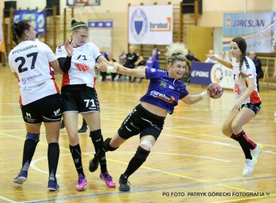 - Zawodniczki Eurobud JKS Jarosław (granatowe koszulki) przegrały z MKS-em Perła Lublin w wyjazdowym meczu PGNiG Superligi kobiet w piłce ręcznej. Spotkanie zakończyło się wygraną miejscowych szczypiornistek 34:25 / fot. Patryk Górecki