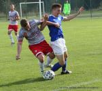- Sokół Sieniawa (niebiesko-białe stroje) tylko zremisował u siebie z beniaminkiem rozgrywek 3 ligi grupy IV, KS-em Wiązownica. Spotkanie zakończyło się wynikiem 0-0 / fot. Patryk Górecki