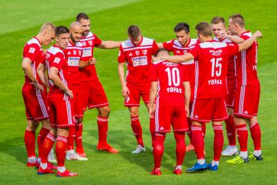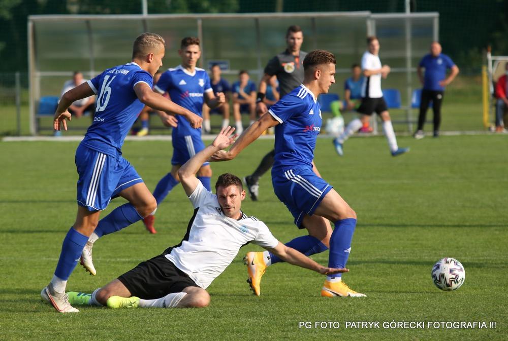 - Sokół Sieniawa (w niebieskich strojach) rozgromił Jutrzenkę Giebułtów 8-0 w meczu 3 ligi grupy IV / fot. Patryk Górecki