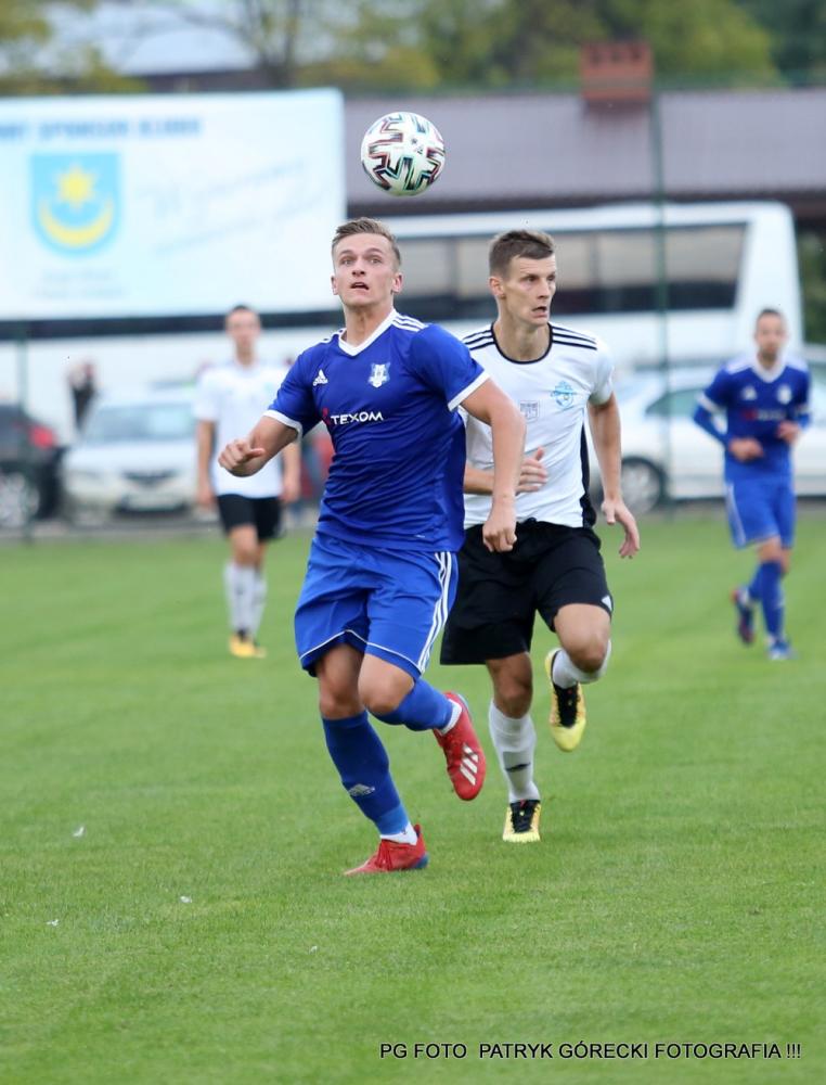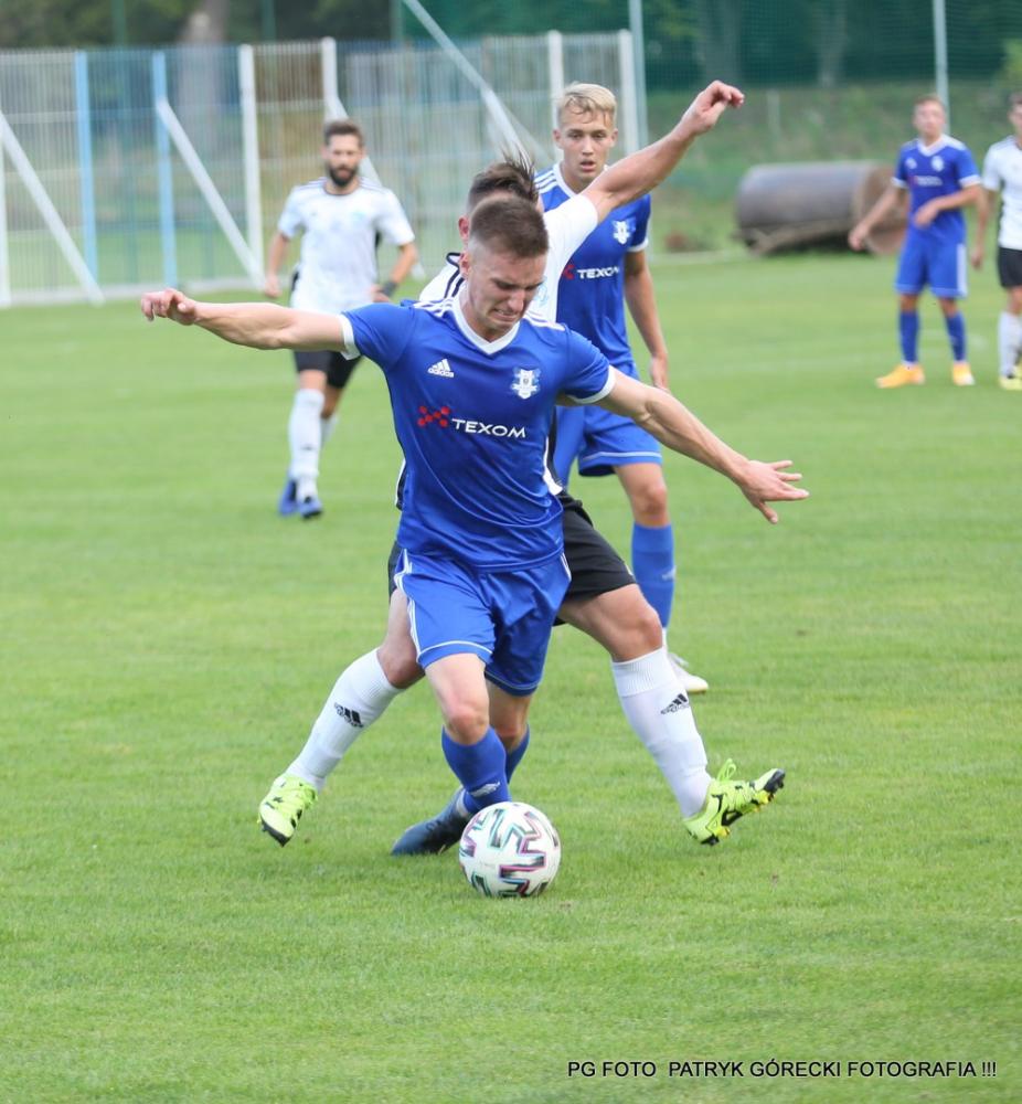 - Sokół Sieniawa (w niebieskich strojach) rozgromił Jutrzenkę Giebułtów 8-0 w meczu 3 ligi grupy IV / fot. Patryk Górecki