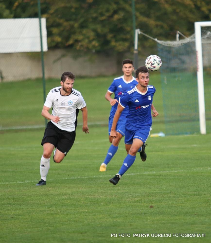 - Sokół Sieniawa (w niebieskich strojach) rozgromił Jutrzenkę Giebułtów 8-0 w meczu 3 ligi grupy IV / fot. Patryk Górecki