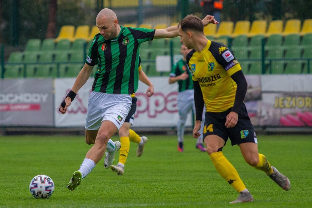 5/28 - 26.09.2020 - Piłkarze Stali Stalowa Wola (zielono-czarne koszulki) pokonali w meczu derbowym Siarkę Tarnobrzeg (żółte koszulki). Spotkanie zakończyło się wynikiem 1-4 (fot. Radosław Kuśmierz)
