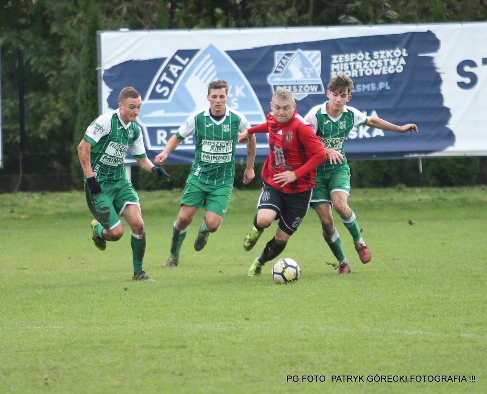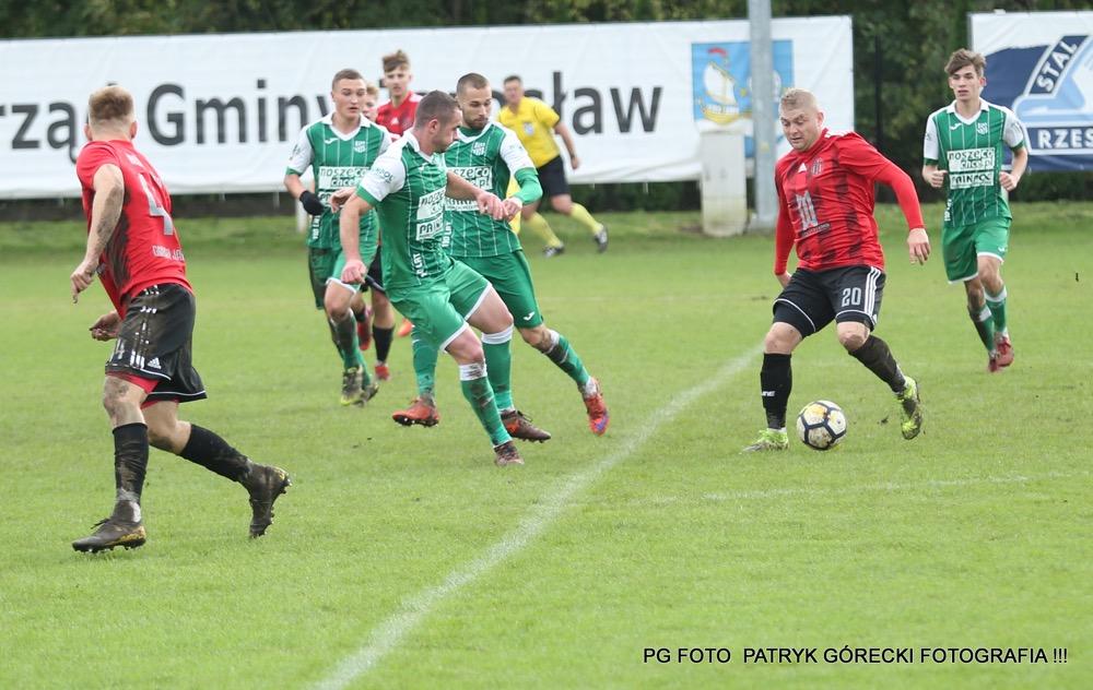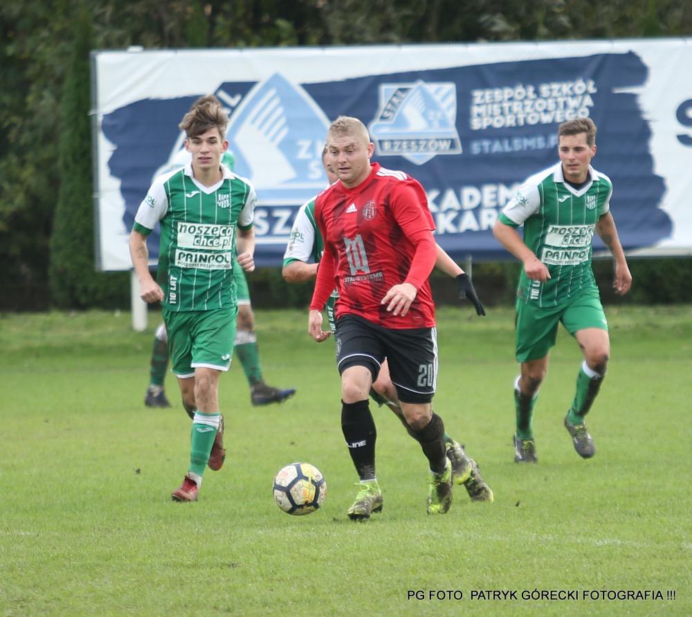 - Piłkarze Wólczanki Wólka Pełkińska (czerwono-czarne stroje) wygrali u siebie z Wisłoką Dębica 2-1 w meczu 15. kolejki rozgrywek 3 ligi grupy IV / fot. Patryk Górecki