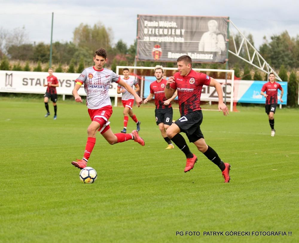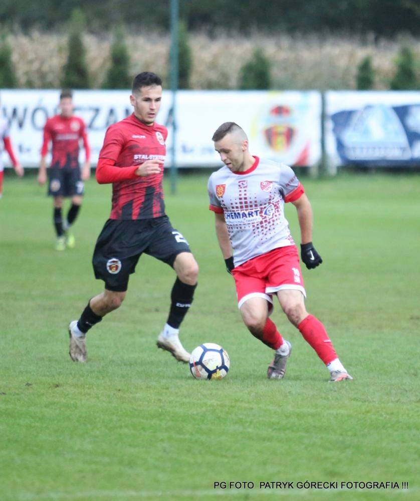- Wólczanka Wólka Pełkińska (czerwono-czarne stroje) rozgromiła czwartoligowy KS Wiązownica aż 8-1 w meczu 1/2 finału okręgowego Pucharu Polski na szczeblu OZPN Jarosław / fot. Patryk Górecki