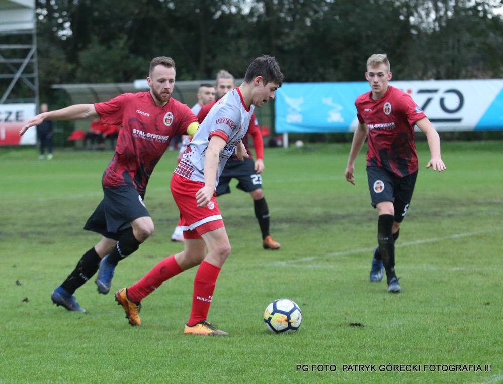 - Wólczanka Wólka Pełkińska (czerwono-czarne stroje) rozgromiła czwartoligowy KS Wiązownica aż 8-1 w meczu 1/2 finału okręgowego Pucharu Polski na szczeblu OZPN Jarosław / fot. Patryk Górecki