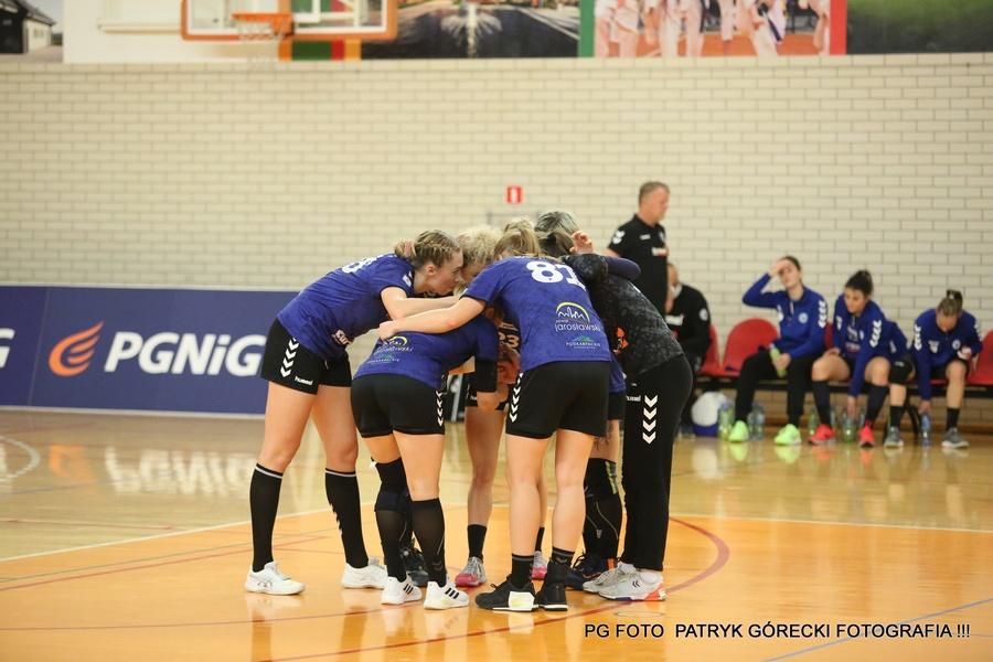 - Eurobud JKS Jarosław (granatowe stroje) uległ na wyjeździe szczypiornistkom KPR-u Gminy Kobierzyce 27-16 w meczu PGNiG Superligi Kobiet w piłce ręcznej (fot. Patryk Górecki)