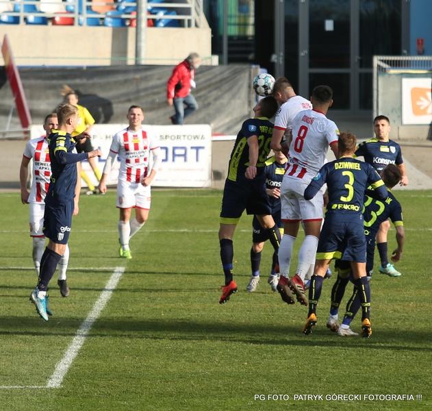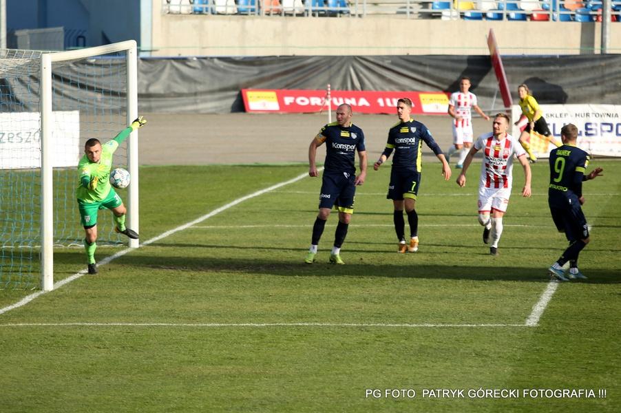 - Apklan Resovia (biało-czerwone stroje) bezbramkowo zremisowała z Sandecją Nowy Sącz (fot. Patryk Górecki)
