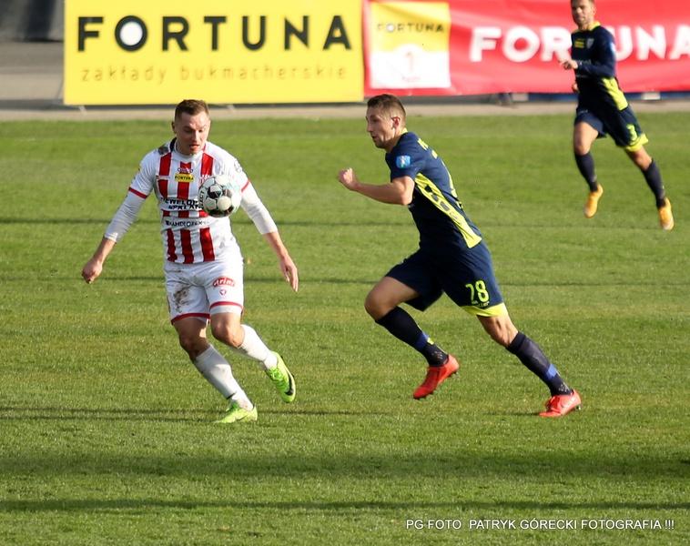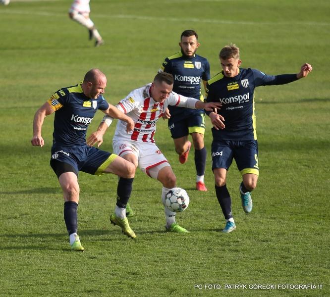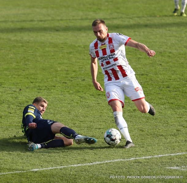 - Apklan Resovia (biało-czerwone stroje) bezbramkowo zremisowała z Sandecją Nowy Sącz (fot. Patryk Górecki)