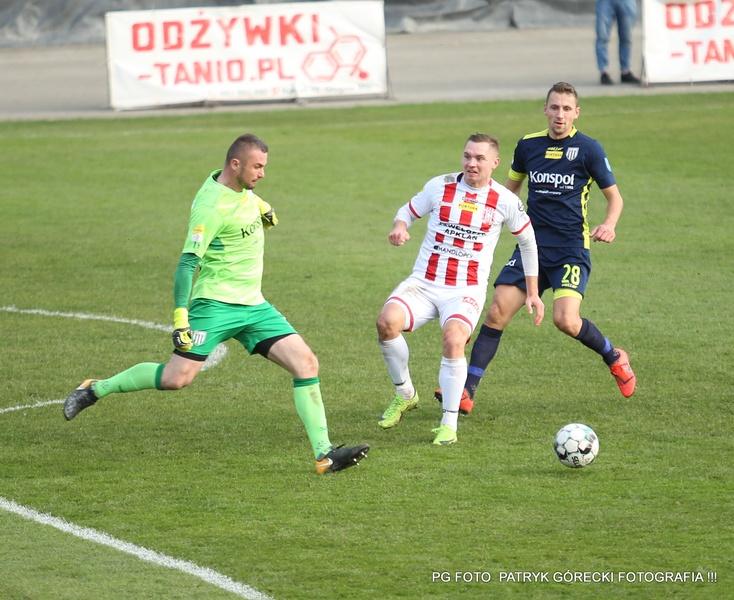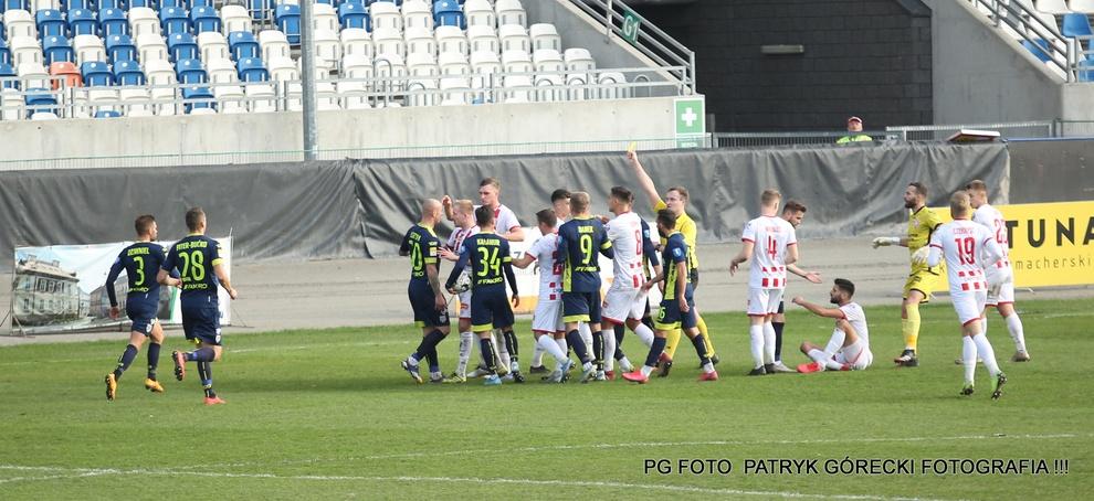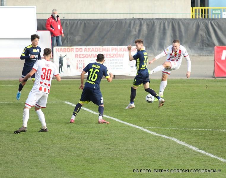 - Apklan Resovia (biało-czerwone stroje) bezbramkowo zremisowała z Sandecją Nowy Sącz (fot. Patryk Górecki)