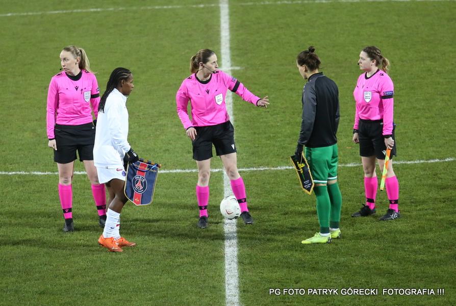 Fotogaleria zdjęć z meczu 1/16 Ligi Mistrzyń pomiędzy Górnikiem Łęczna a Paris Saint-Germain. Spotkanie zakończyło się wygraną gości 0-2.