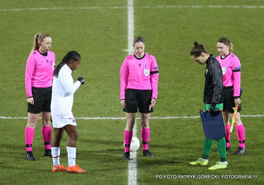 Fotogaleria zdjęć z meczu 1/16 Ligi Mistrzyń pomiędzy Górnikiem Łęczna a Paris Saint-Germain. Spotkanie zakończyło się wygraną gości 0-2.