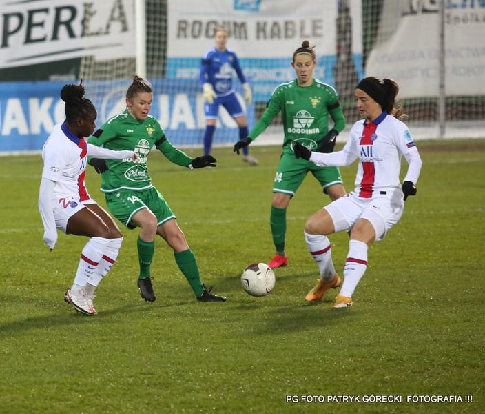 Fotogaleria zdjęć z meczu 1/16 Ligi Mistrzyń pomiędzy Górnikiem Łęczna a Paris Saint-Germain. Spotkanie zakończyło się wygraną gości 0-2.