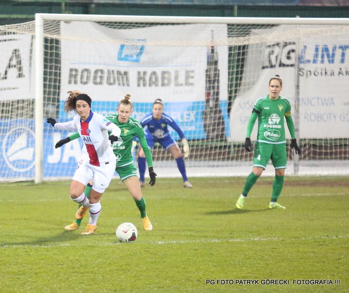 Fotogaleria zdjęć z meczu 1/16 Ligi Mistrzyń pomiędzy Górnikiem Łęczna a Paris Saint-Germain. Spotkanie zakończyło się wygraną gości 0-2.