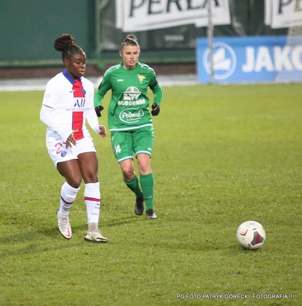 Fotogaleria zdjęć z meczu 1/16 Ligi Mistrzyń pomiędzy Górnikiem Łęczna a Paris Saint-Germain. Spotkanie zakończyło się wygraną gości 0-2.