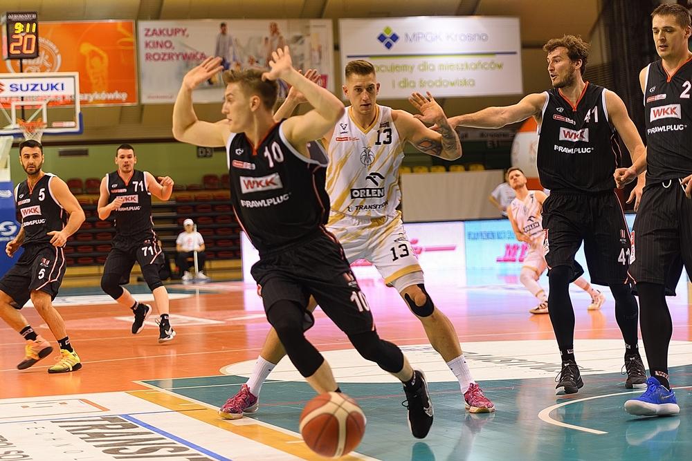 Fotogaleria zdjęć z meczu Suzuki 1 ligi mężczyzn w koszykówce mężczyzn pomiędzy Miastem Szkła Krosno a WKK Wrocław. Podkarpacki zespół przegrał 88-98.