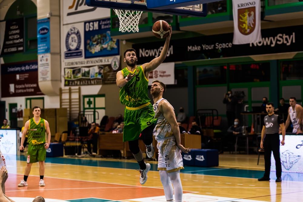 Fotogaleria zdjęć z meczu Suzuki 1 ligi mężczyzn w koszykówce mężczyzn pomiędzy Miastem Szkła Krosno a Elektrobud-Investment Zniczem Basket Pruszków. Podkarpacki zespół przegrał 73-80.