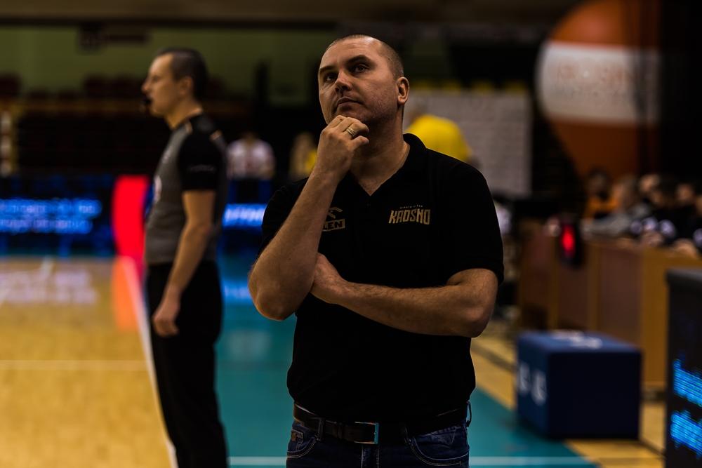 - Miasto Szkła Krosno (białe stroje) przegrało na własnym parkiecie z Elektrobud-Investment Zniczem Pruszków w meczu Suzuki 1 ligi mężczyzn (fot. Konrad Kwolek)