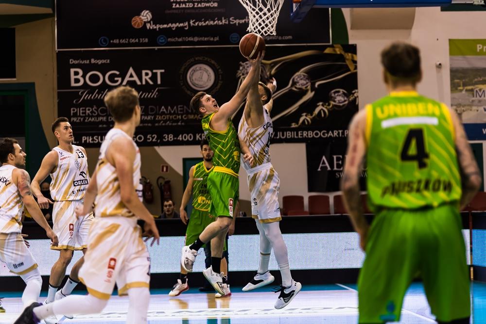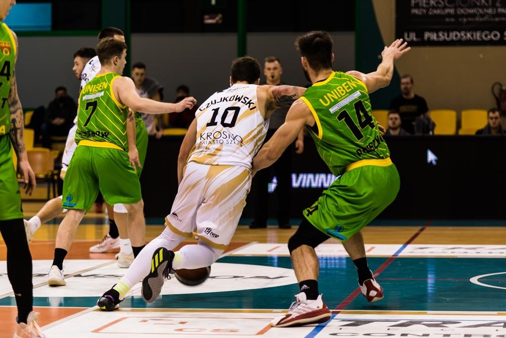 Fotogaleria zdjęć z meczu Suzuki 1 ligi mężczyzn w koszykówce mężczyzn pomiędzy Miastem Szkła Krosno a Elektrobud-Investment Zniczem Basket Pruszków. Podkarpacki zespół przegrał 73-80.