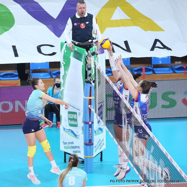- Developres SkyRes Rzeszów (błękitne koszulki) pokonał u siebie E.Leclerc Moya Radomkę Radom, rozgrywanym na Hali Podpromie. Podkarpacki zespół wygrał w setach 3-0 (fot. Patryk Górecki)