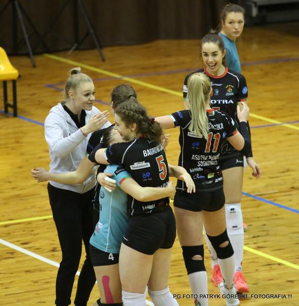 - San-Pajda Jarosław (żółto-czarne koszulki) w meczu 15. kolejki 1 ligi siatkówki kobiet mierzył się z Asorta Płomień Sosnowiec. Popularne "Biszkopty" przegrały w tie-breaku (fot. Patryk Górecki)