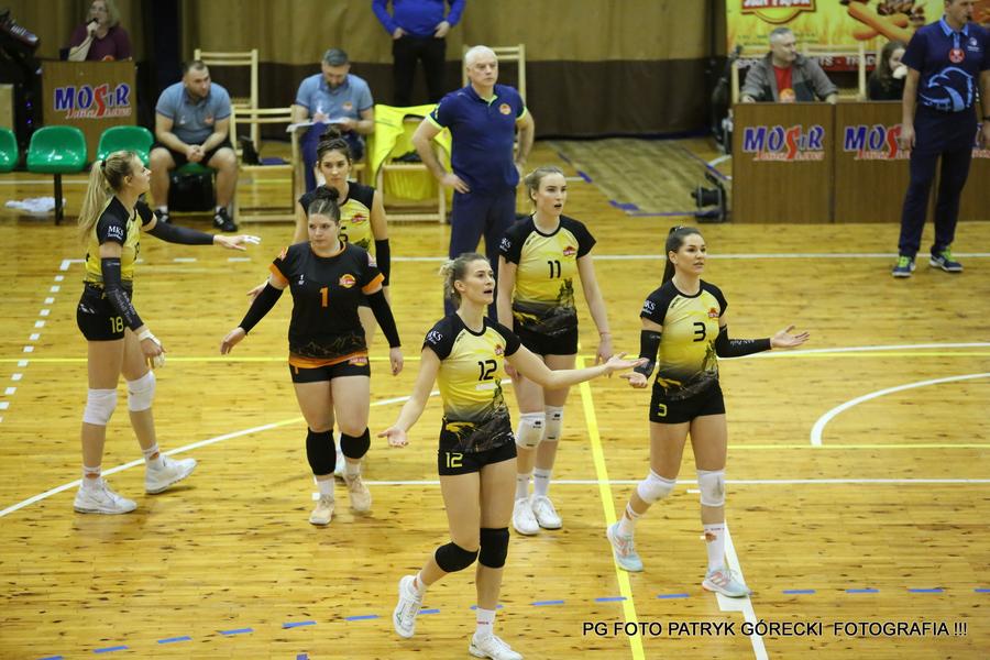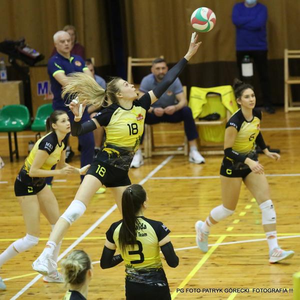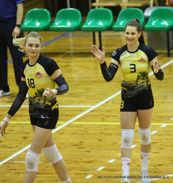 - San-Pajda Jarosław (żółto-czarne koszulki) w meczu 15. kolejki 1 ligi siatkówki kobiet mierzył się z Asorta Płomień Sosnowiec. Popularne "Biszkopty" przegrały w tie-breaku (fot. Patryk Górecki)