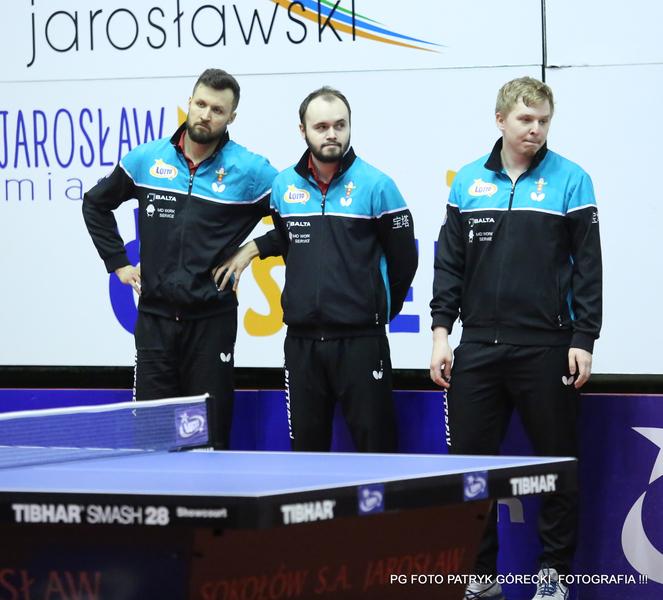 - Zawodnicy Sokołów SA Jarosław (niebieskie koszulki) pewnie pokonali AZS AWFiS Balta Gdańsk 3-0, w mecz 15. kolejki LOTTO Superligi (fot. Patryk Górecki)