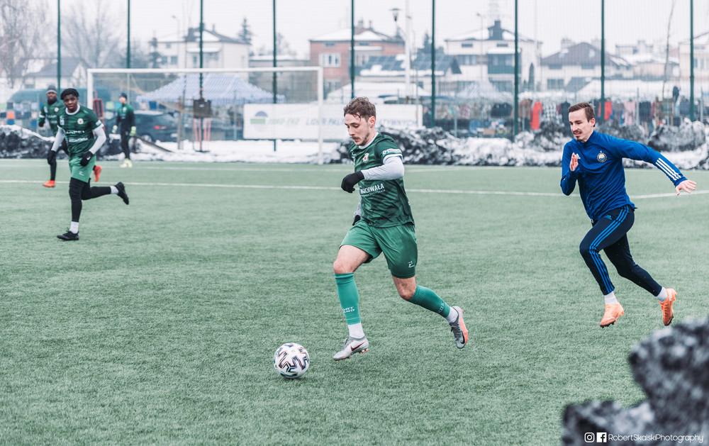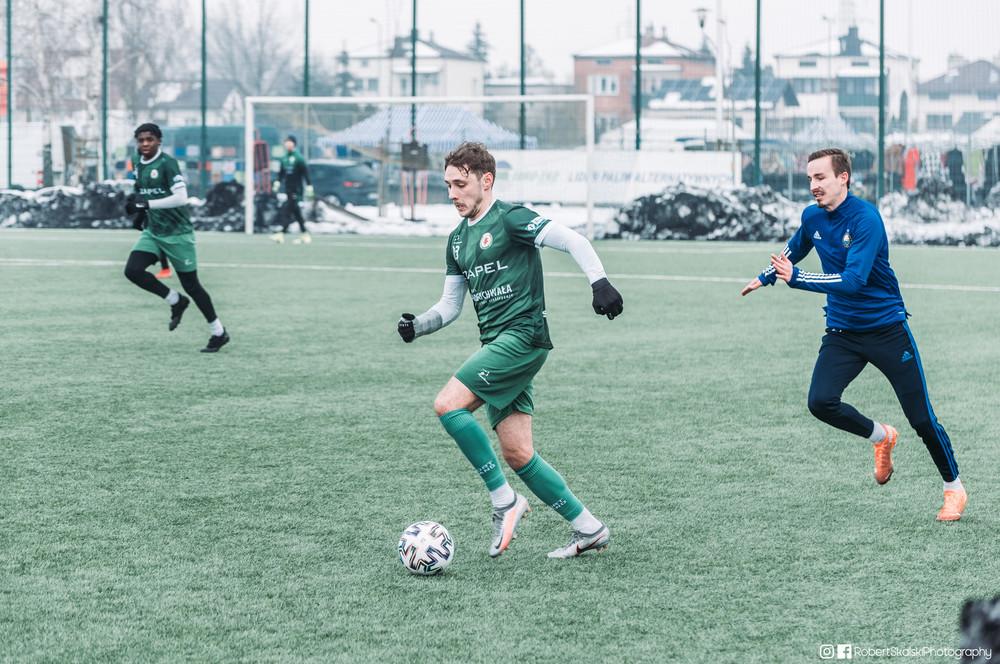 - Izolator Boguchwała (zielone stroje) zremisował w rozegranym w Mielcu meczu sparingowym z rezerwami tamtejszej Stali. Spotkanie zakończyło się remisem 1-1 (fot. Robert Skalski)