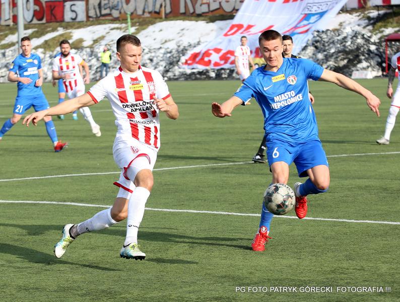 - Piłkarze Apklan Resovii (białe stroje) pokonali Puszczę Niepołomice w meczu 18. kolejki Fortuna 1 ligi (fot. Patryk Górecki)