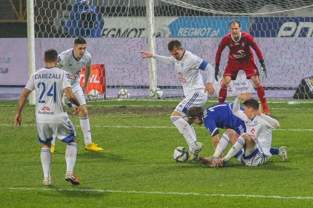 - PGE Stal Mielec (niebieskie stroje) zremisowała z Wisłą Płock 2-2 w zaległym meczu 16. kolejki PKO Ekstraklasy (fot. Radosław Kuśmierz)