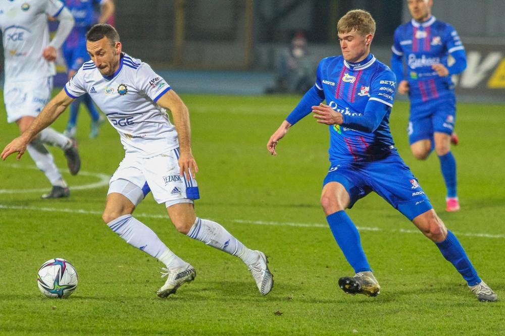 - Piłkarze PGE Stali Mielec (białe stroje) w meczu 21. kolejki PKO Ekstraklasy pokonali Podbeskidzie Bielsko-Biała 2-1 (fot. Radosław Kuśmierz)