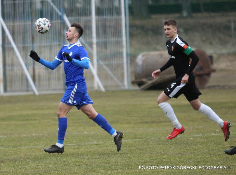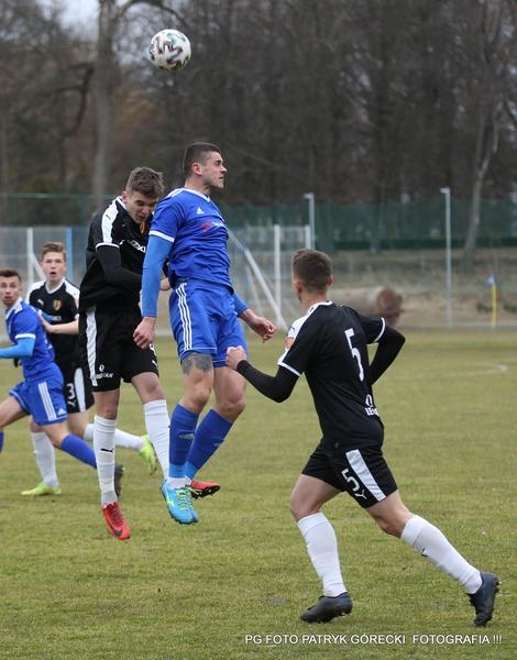 - TEXOM Sokół Sieniawa (niebieskie stroje) zdobył komplet punktów w starciu z rezerwami Korony Kielce (fot. Patryk Górecki)
