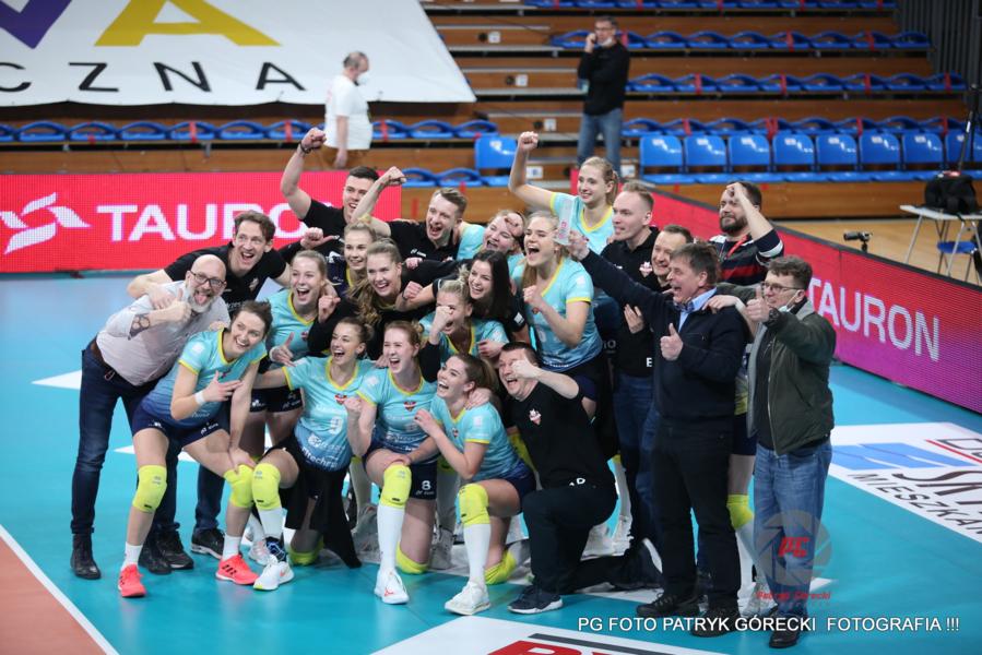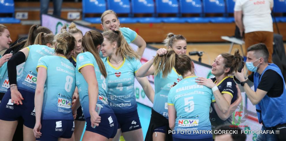 - Siatkarki Developresu SkyRes Rzeszów (błękitne koszulki) pokonały ŁKS Commercecon Łódź 3-1 i awansowały do finału Tauron Ligi (fot. Patryk Górecki)