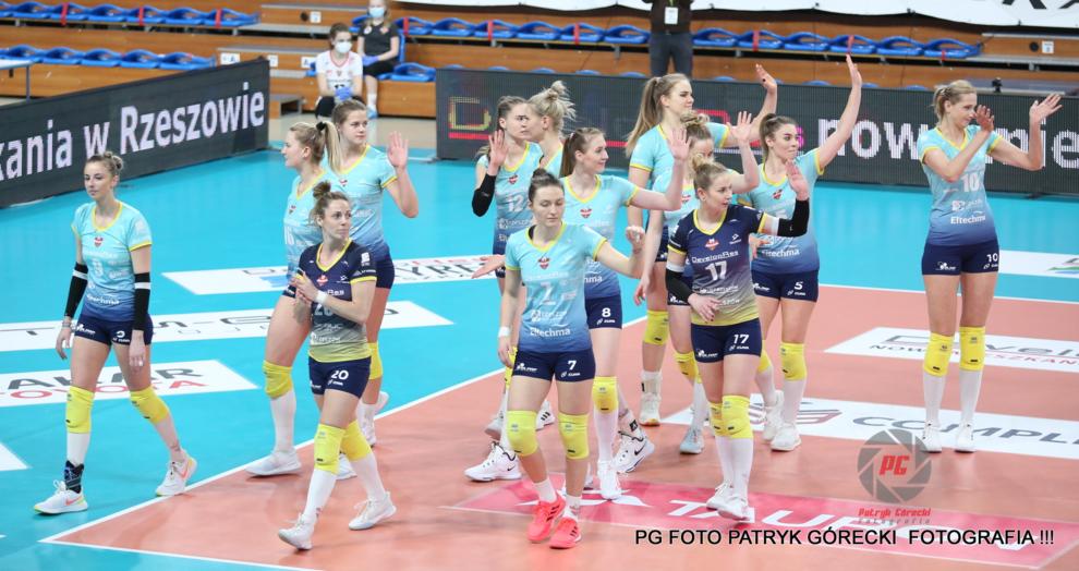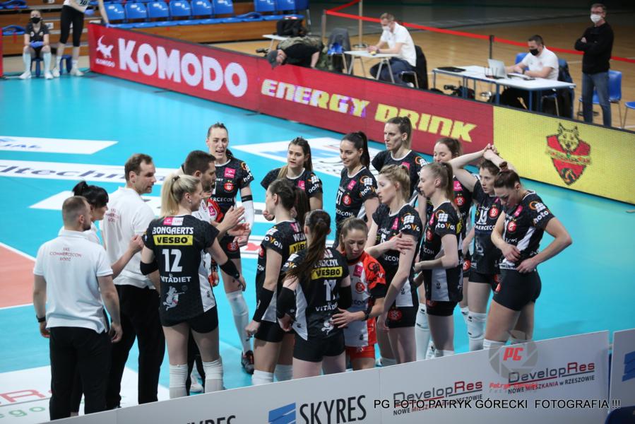 - Siatkarki Developresu SkyRes Rzeszów (błękitne koszulki) pokonały ŁKS Commercecon Łódź 3-1 i awansowały do finału Tauron Ligi (fot. Patryk Górecki)